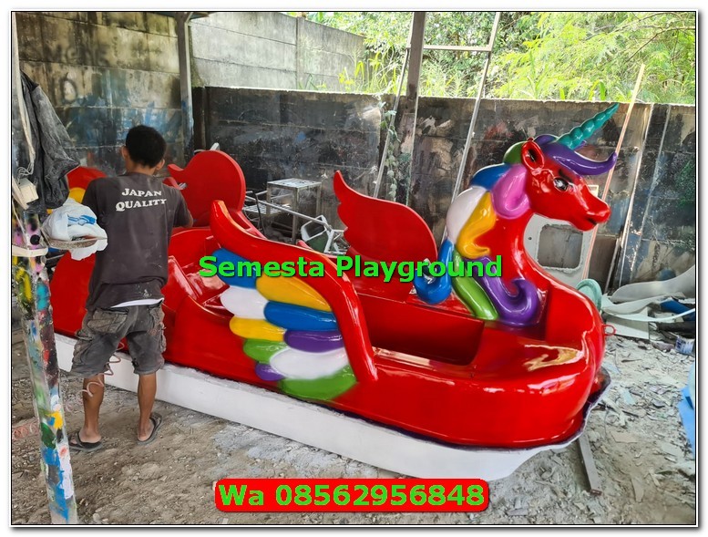 Bagi pengelola wisata yang ingin menghadirkan wahana dengan identitas unik, layanan custom menjadi solusi ideal. Di Semesta Playground, kami melayani pembuatan perahu bebek air custom sesuai kebutuhan, mulai dari bentuk, warna, hingga kapasitas penumpang. Proses pengecatan dilakukan menggunakan cat berkualitas tinggi agar tampilan tetap menarik meskipun digunakan di luar ruangan.