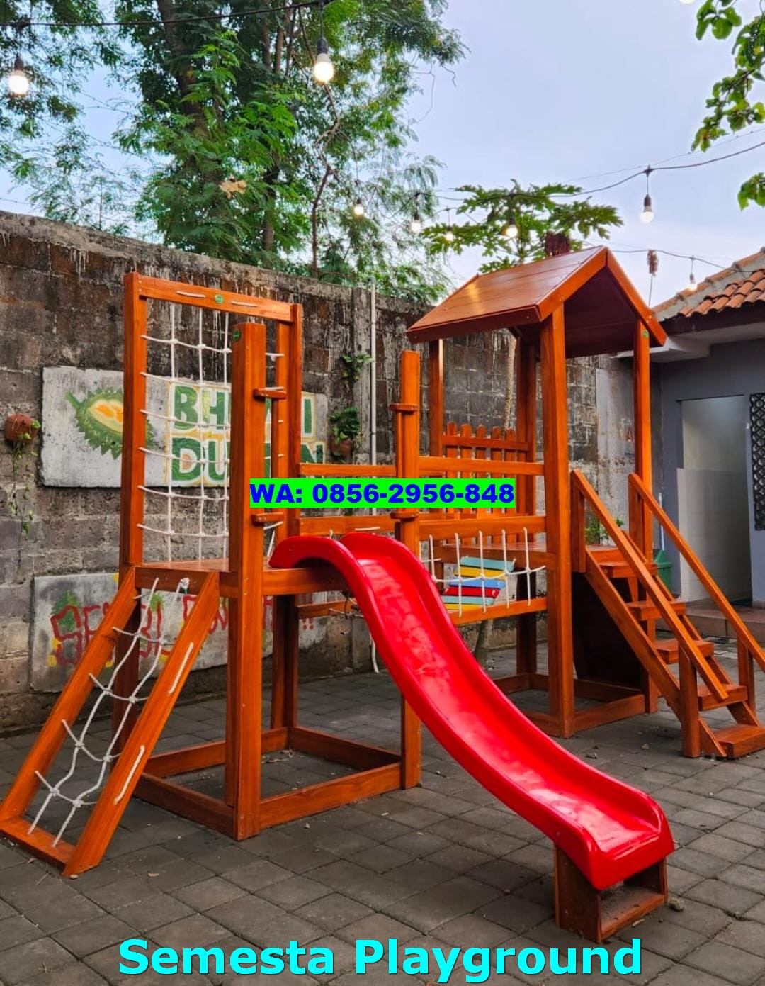 Konsultasi di setiap pembuatan playground kayu anak perlu dicermati Kembali. Standar kayu dari Semesta Playground pastinya mengedepankan aspek harga, Dalam satu kesempatan produksi inilah menjadi sebuah inovasi kami. Sebab, dalam banyak kesempatan sudah terbukti jenis kayu terbaik akan memperkuat dan mempertahankan konsep playground kayu anak lebih awet. Harga dari setiap kayu bisa diklasifikasi sesuai kebutuhan Anda. Di setiap pengembangan model playground kayu memang butuh beberapa tahap. Kami memiliki tim terbaik dalam membuat playground kayu, sehingga paket harganya sudah disesuaikan.